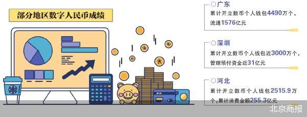 结合各地东说念主民银行裸露的数据来看,截止6月末,广东全省累计开立数字东说念主民币个东说念主钱包4490万个,流通3.82亿笔、1576亿元,落地援助数字东说念主民币支付商户620万个;深圳累计开立数字东说念主民币钱包近3000万个,累计签约预支式规划机构3800家、措置预支资金近31亿元;河北全省援助受理数字东说念主民币商户286.7万个,较年头增长6.4%;开立个东说念主钱包2515.9万个,较年头增长12.1%;累计蹧跶金额255.3亿元,总业务金额2148.5亿元,差别较年头增长26.4%、32.2%。